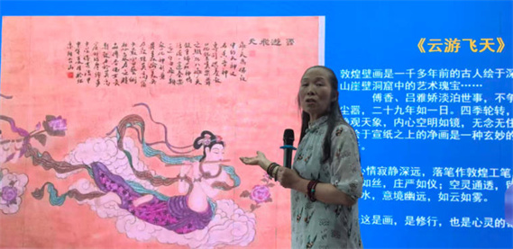 著名禅意画家傅香以《画家傅香吕雅娇作品赏析》为题,给大家分享了她自己的创作体会,还有她女儿的作品赏析。傅香的法号是妙荷,她是一位有故事、带传奇色彩的艺术家。她出生于书香世家甘肃敦煌,三岁受母亲传承绘画,她酷爱绘画艺术,半生过着与世隔绝的清苦艺术家生活,像个孩童,心灵一尘不染。1991年至1994年期间,随西北师大美术系王宠恩教授一行,到甘肃敦煌东千佛洞二窟,临摹洞窟墙壁上的古画《接引佛》。1995年至1997年在甘肃敦煌瓜州博物馆敬画巨幅壁画《观无量寿佛经变》现陈列于博物馆。1998年至2001年为敦煌书画院职业画家,作品在敦煌博物馆展出,并被世界各国友人收藏。