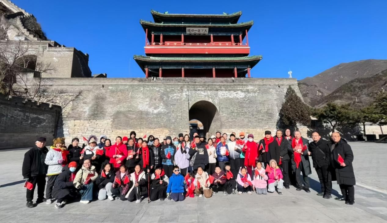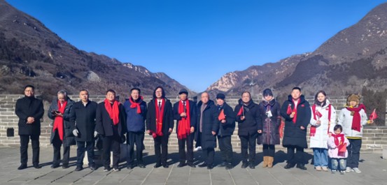 与同类读书活动相比,本次活动创新采用“全天沉浸式+户外研学+室内研讨”的模式,打破传统读书沙龙的空间局限,让参与者在行走中感悟文化,在交流中凝聚共识。上午,全体嘉宾前往北京居庸关长城,踏着雄关漫道,感受万里长城的磅礴气势。在“不到长城非好汉”标志碑前,大家齐声高歌,抒发家国情怀;在“天下第一雄关”门前,手持小红旗与《雪落长河静无声》图书,录制拜年视频,向全国人民送上新春祝福。伴随着激昂的旋律,《万里长城永不倒》《我在长城过大年》的合唱声回荡在长城之上,嘉宾们同步展示长篇报告文学《雪落长河静无声》,播放《好人的情怀——写给著名企业家于海洋的歌》,将长城的民族精神与于海洋的企业家情怀巧妙融合,营造出浓厚的新春氛围与文化气息。